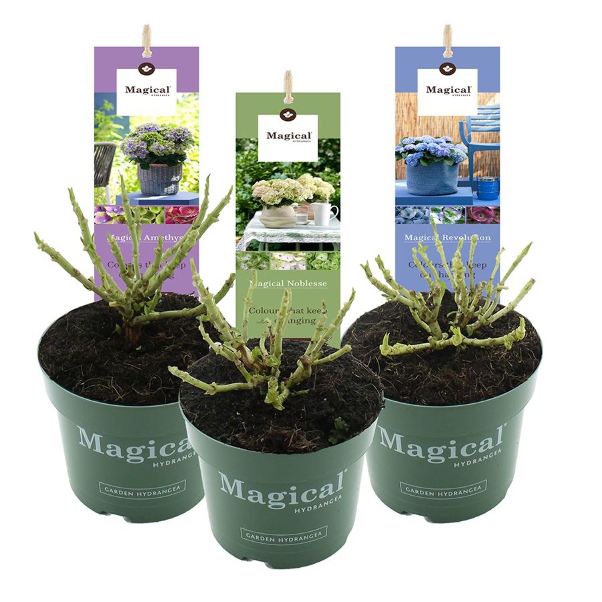 Hydrangea m. Magical Four Seasons in varieties