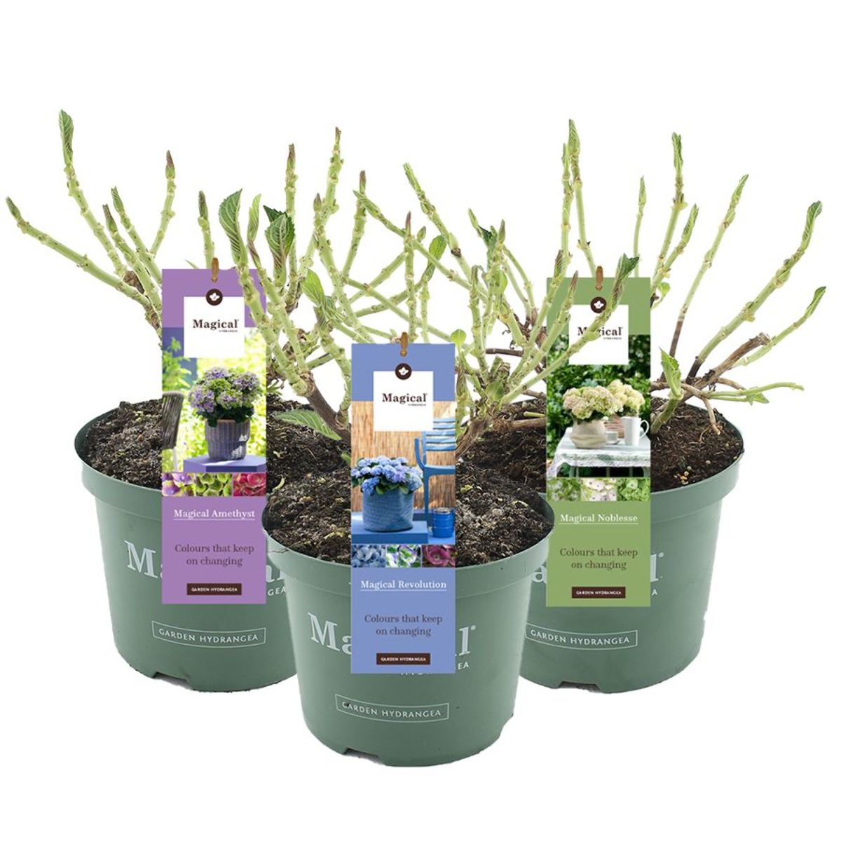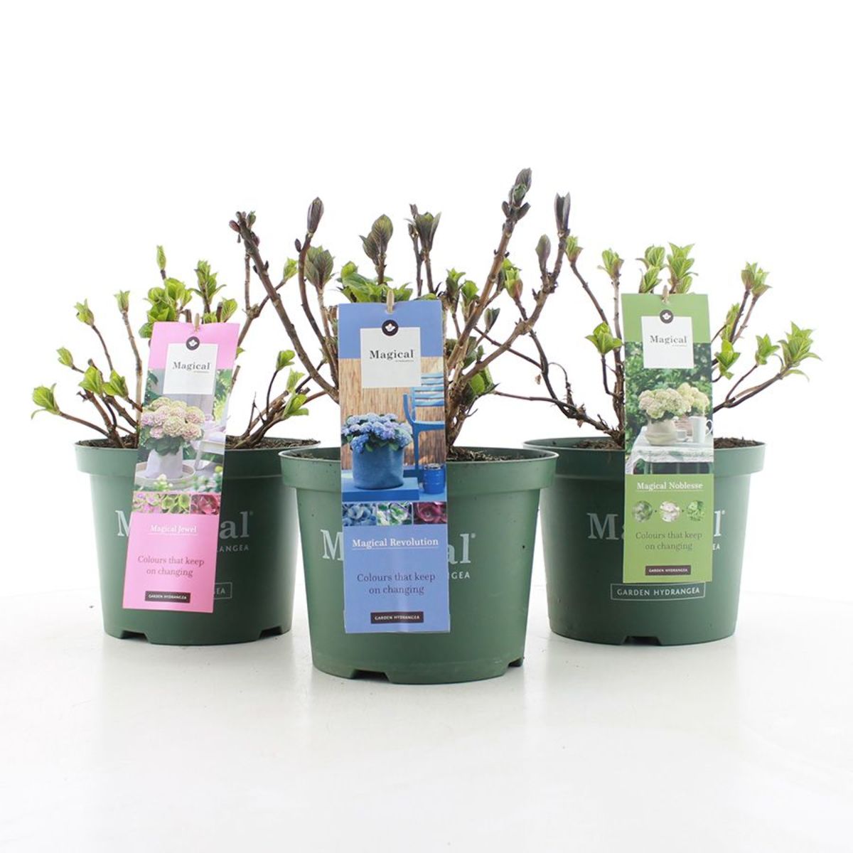 Hydrangea m. Magical Four Seasons in varieties